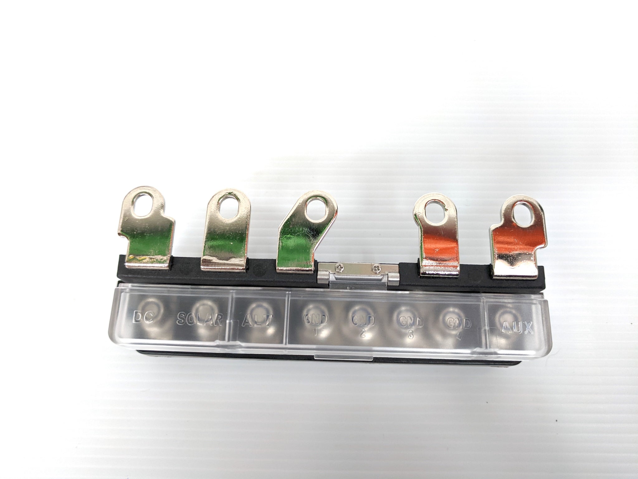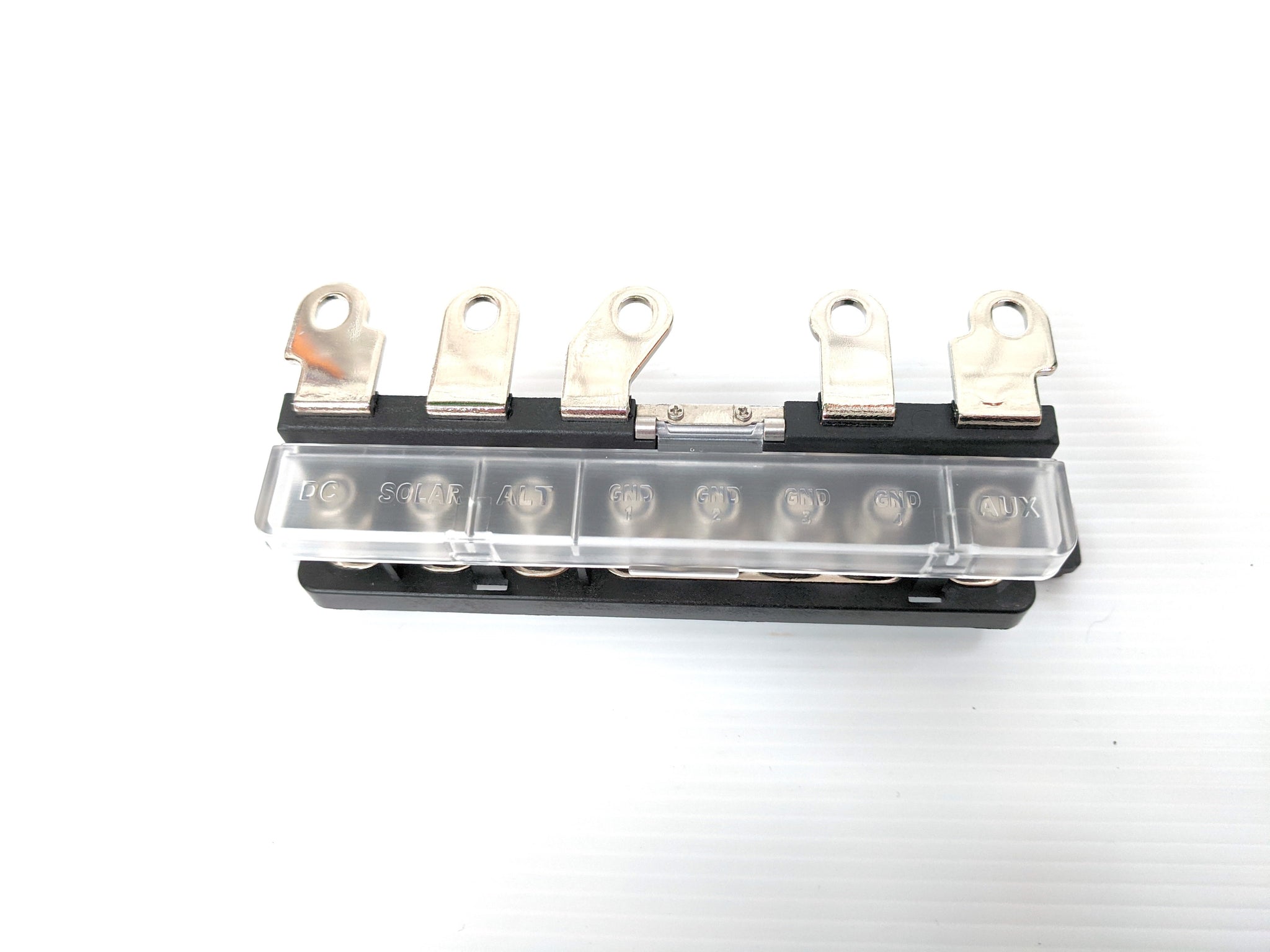A clear plastic cover hinges over the terminals to provide further protections
